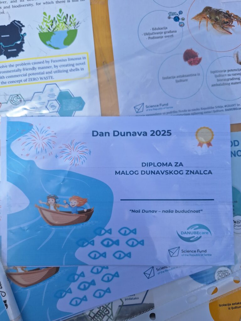 The DANUBEcare team was honored to participate in the Danube Day celebrations, organized by Turistička organizacija Beočin on June 28th in Banoštor. We took part in creative and educational workshops for children, designed to raise awareness about the importance of protecting the Danube, one of Europe’s most vital rivers. The event also provided a valuable opportunity to educate young participants about the invasive spiny-cheek crayfish, a species that threatens biodiversity and native crayfish populations.